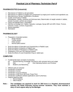 This post contains the complete practical list of Pharmacy Technician Part-II, covering all major subjects including Pharmaceutics (Industrial), Pharmacology & Computer.